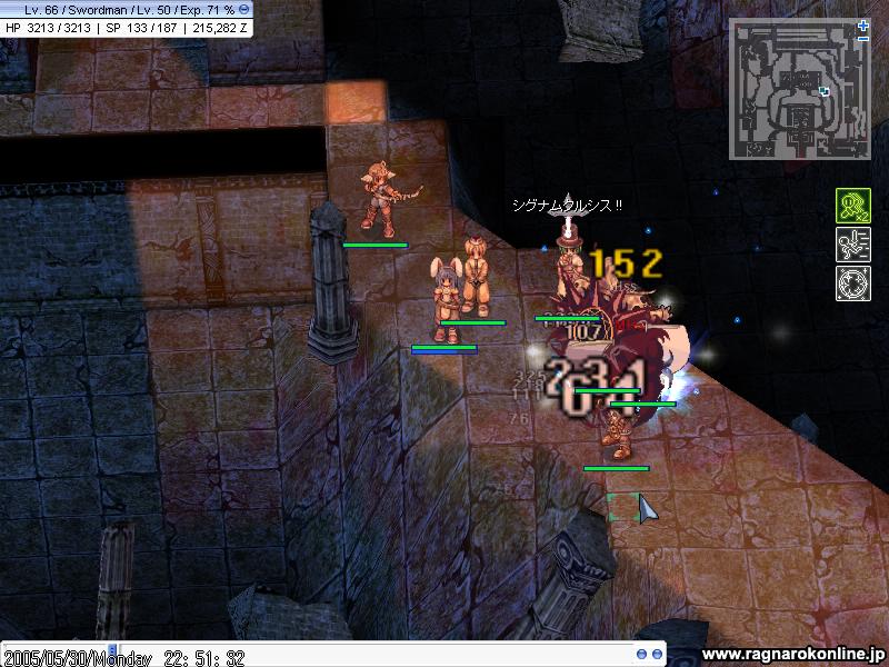 剣士3、アコ3、アチャ2、シーフ1、商人1、の10人でした。 今日のメニューは龍の城観光〜アチャさんの発光式でした。 みなさま、おつかれさまでした。 |