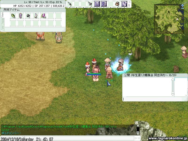 ID:QOuzLYtA こちらsaraサーバーです。 現在3名です。 366 名前:(○口○*)さん :04/06/12 21:49 ID:QOuzLYtA こちらsaraサーバーです。 変わらず3名 現在シーフ*2アコ1 看板立ててお待ちしてます。 372 名前:(○口○*)さん :04/06/12 22:19 ID:QOuzLYtA こちらsaraサーバーです。 商人さんが加わり現在4名 おいでおいでー 375 名前:(○口○*)さん :04/06/12 22:55 ID:aV6BzjEC 鯖によってはまだマッタリ雑談してるところもありますよ(^^ もしお時間が許すなら探してみても良いかとvv (ちなみにSaraはまだ雑談中を確認。 376 名前:(○口○*)さん :04/06/12 23:22 ID:QOuzLYtA こちらsaraサーバーです。 現在シーフ*2アコ1アチャ1商人1計5人 これからピラ4F突撃します。 392 名前:(○口○*)さん :04/06/13 00:40 ID:ZlESqDWH こちらsaraサーバーです。 マッタリとピラ4Fを散歩 オシリスがいて叩きましたw 楽しかったです〜(^^ 次回もまたやりたいですね お疲れ様でしたm(__)m 396 名前:(○口○*)さん :04/06/13 01:02 ID:zYaHDwcm サラ鯖終了、ss撮り忘れて一枚のみあっぷ。 http://nekomimi.ws/~asanagi/cgi-bin/ragnarok/source/20040613010016-sara01.jpg |